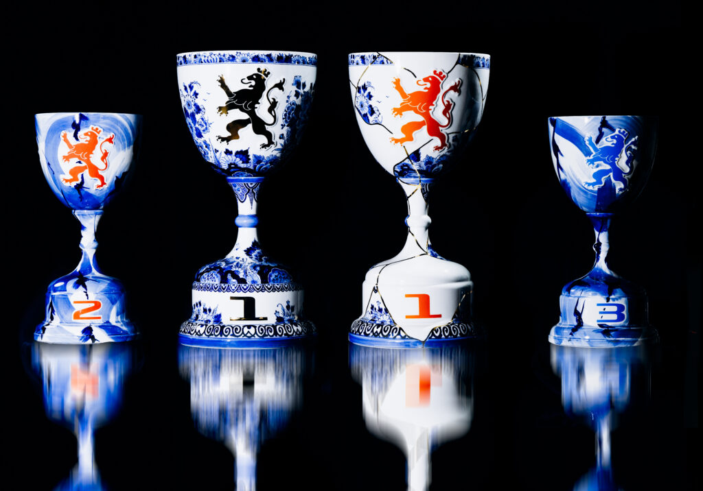 Each trophy tells its own story. The winner’s trophy is entirely executed in the signature floral Delft Blue decoration. The constructor’s trophy is inspired by the Japanese art of Kintsugi, with hand-painted patterns finished with 24K gold luster detailing, as if the trophy had been restored from shards. The second- and third-place trophies feature dynamic brushstrokes that convey the speed and energy of Formula 1. Together, they form an impressive and meaningful collection that showcases Dutch pride and craftsmanship on an international stage.